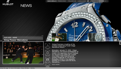 先月17日、スイスの腕時計メーカーHUBLOT(ウブロ)のチャリティイベントが中国・上海で行われ、アルゼンチン出身で、同社のイメージ大使を努めるディエゴ・マラドーナが100万元の寄付をかけて「1ミリオン人民元ゴールシューティング」にチャレンジした。