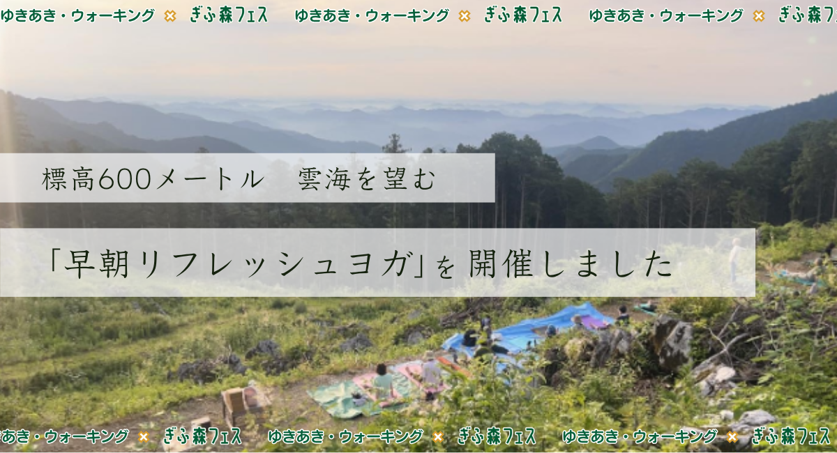 岐阜県下呂市の「ゆきあき・ウォーキング」(岐阜県下呂市萩原町羽根1604-1・田中由希子と田中晃子)は、ぎふ森フェス(2025年10月1日~11月30日まで)の体験プログラムの一つである【早朝リフレッシュヨガ】を、10月11日(土)に郡上市美並の山頂で開催しました。日の出前の暗い時間に集合し、しらじらと明けてくる空の下ヨガで体を目覚めさせ、身体が整ったところで新米のご飯と温かいお味噌汁をいただく、贅沢な時間になりました。