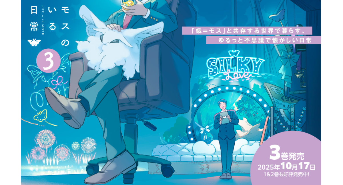 時代は猫吸いならぬ、蛾(モス)吸い!? SNSで話題のでっかくて可愛いモス!?との少し不思議な日常漫画『モスのいる日常』待望の単行本第3弾が10月17日発売!
